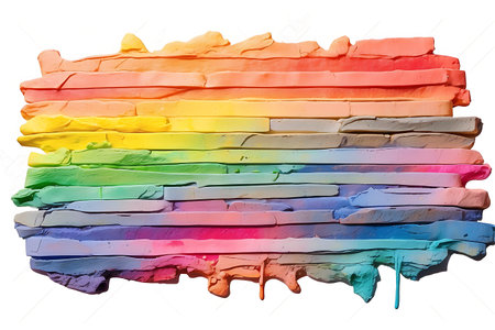 Stripes of rainbow coloured sand , copy space on white background , Generative AI