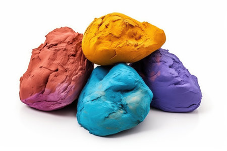 Rainbow colors plasticine play dough modeling clay isolated over white.