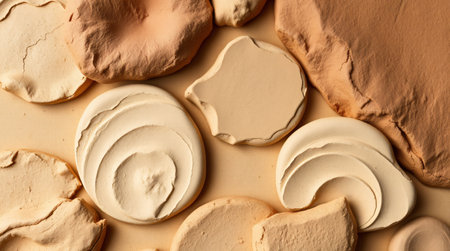 Textures of clay and plastic showcase natural material in an artistic arrangement