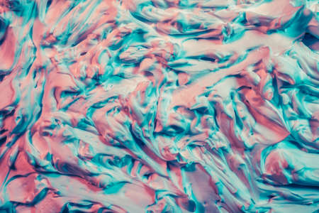 Multicolor abstract art background. White, blue and coral wet acrylic paint mix. Toothpaste effect.