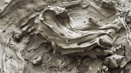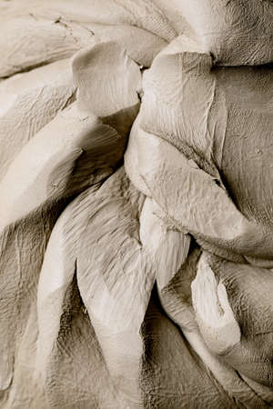 Close up macro of piece of raw grey clayTop view. DIY potter hobby background
