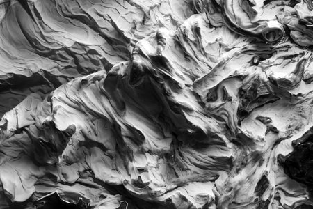 Mixed black and gray acrylic foam background. Liquid smooth relief texture. Thick bold fluid acrylic foam texture is mixed. Heavy thick paint strokes. Monochrome texture with muted shadows