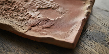Warm terracotta and bronze clay surface with natural organic imperfections.