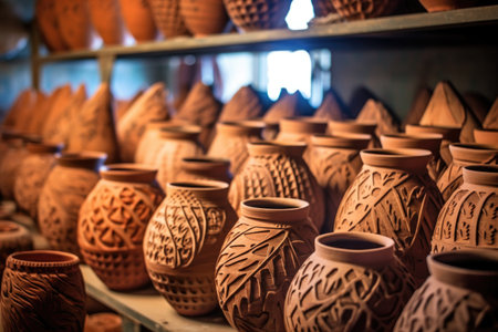 beautifully crafted clay pots awaiting firing, created with generative ai