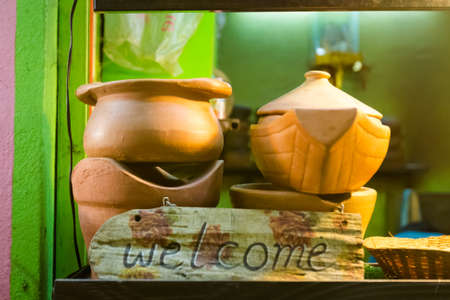 Clay pottery in the market, Thailand. Selective focus.