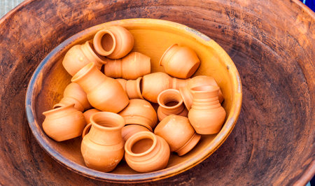 Close up of a handmade ceramic pots. India
