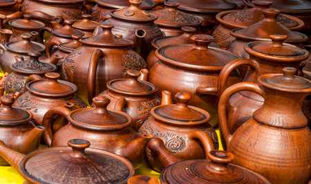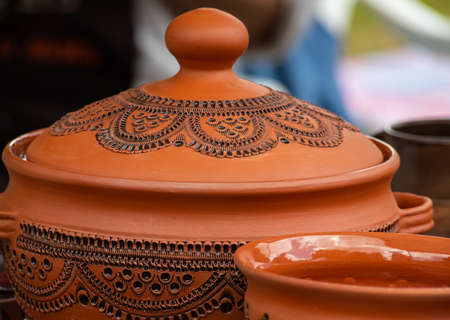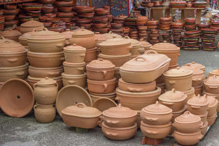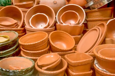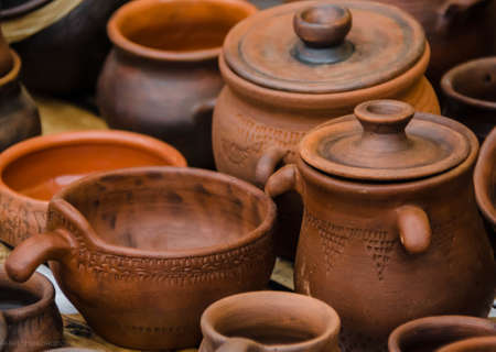 Traditional homemade ceramic pots on traditional crafts fair.