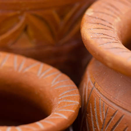 A Shallow depth of field Macro Abstract image of hand made earthen pots with design