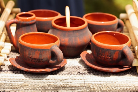 handmade fired clay tableware at the fair