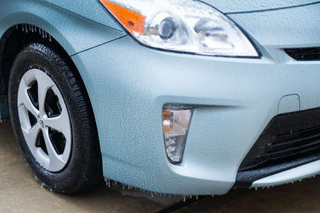 Pearland, TX/USA - 01 24 2014: Ice on car wheels during rare Ice Storm in Houston, TX area