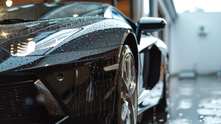 Professional car wash meticulous cleaning of sleek black sports car for ultimate shine
