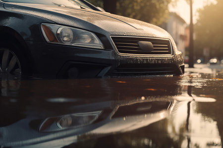 Car submerged in flood water. Car insurance concept. Generative ai