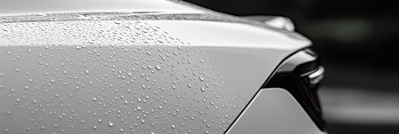 Water Beading on a White Car A Close-Up of the Hydrophobic Effect on Automotive Paint