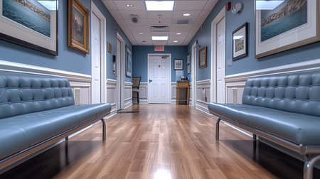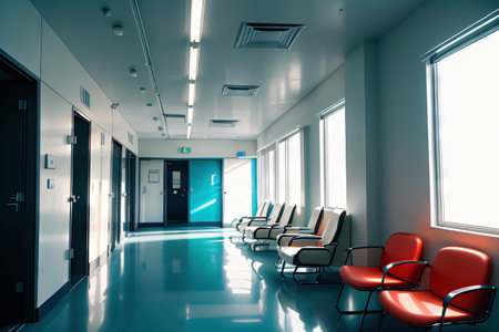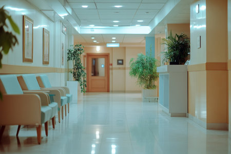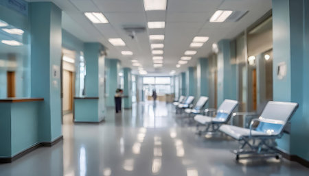 A hospital hallway reception clinic captured with a modern aesthetic and unfocused background. This image conveys professionalism and warmth, ideal for healthcare or wellness themes in various