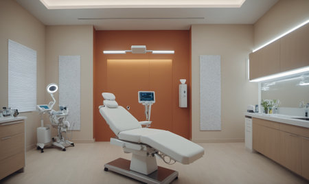 Modern aesthetic treatment room with advanced equipment and calming ambiance during daylight hours