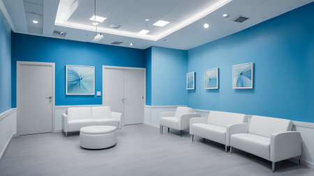 Abstract interior of a hospital reception area with blurred background for health concept imagery
