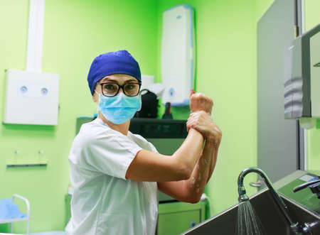 Surgeon in the hospital washing hands