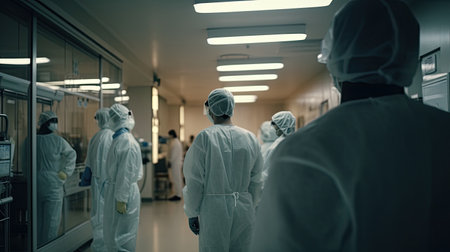 Healthcare workers in protective gear fight bacteria generated by artificial intelligence