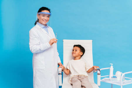 Covid-19 (coronavirus) vaccination campaign in a clinic - People getting vaccinated from doctor and nurse to prevent corona virus outbreak in a vaccination point