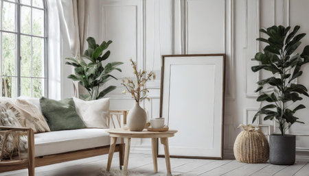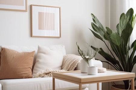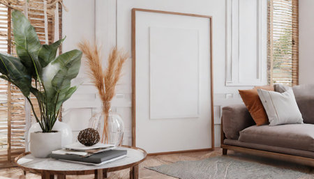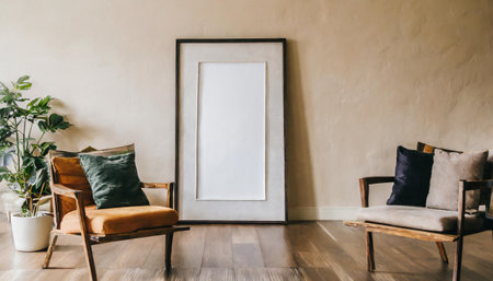 beautiful interior design furniture with mockup poster artwork with border frame interior house template for your design clean minimalist style decoration home interior background ideas,ai generate