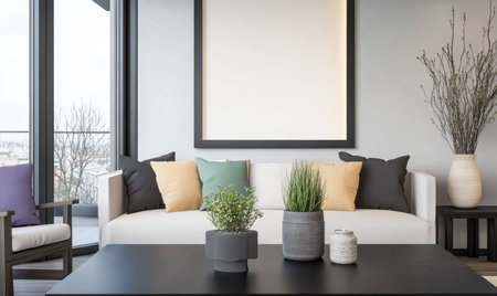 Elegant and modern living room interior with cozy decor elements