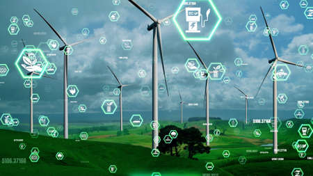 Illustration representing clean energy concept. Renewable energy sources, eco-friendly technology, and a sustainable future.