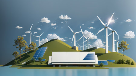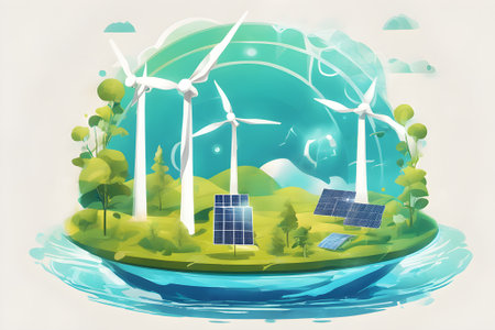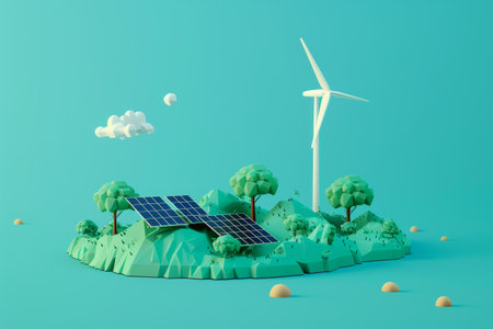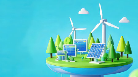 Illustration representing clean energy concept. Renewable energy sources, eco-friendly technology, and a sustainable future.