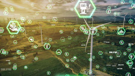 Technology for the environment Using environmentally friendly technology Engineer designs wind turbine models clean energy network