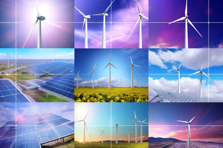 Contemporary art collage showcasing a harmonious blend of nature and renewable energy sources. Emphasizing the importance of environmental conservation and sustainable practices for a greener future
