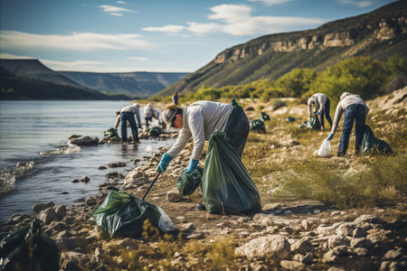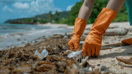 participating in a beach cleanup, highlighting the collective effort to protect oceans and promote sustainable practices.Generative AI