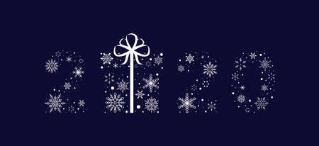 2020 from snowflakes with a gift. New Year. Vector illustration. Flat design