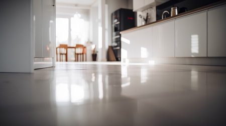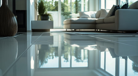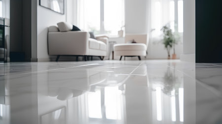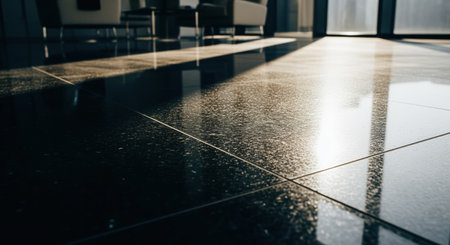 Smooth surface of a glossy marble floor in an upscale lobby, reflecting natural light