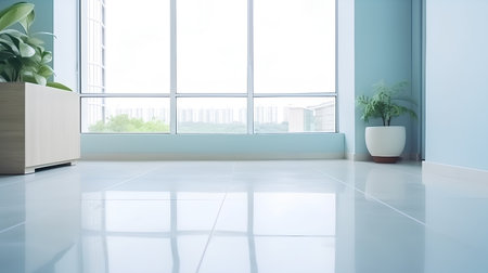 A stunning view of a modern art gallery showcases a gleaming tiled floor reflecting the soft light from large windows. The scene captures the essence of creativity and inspiration, inviting visitors to explore the artistic treasures displayed on the walls.