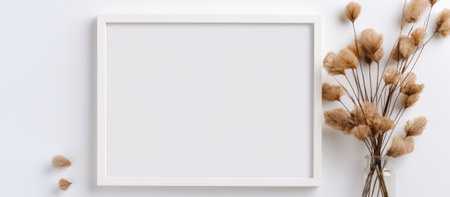 Rectangle frame with dried flowers in a vase on white background