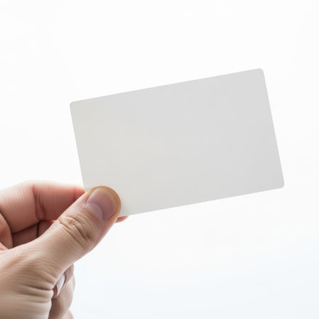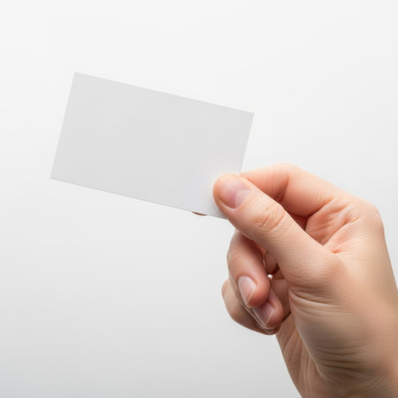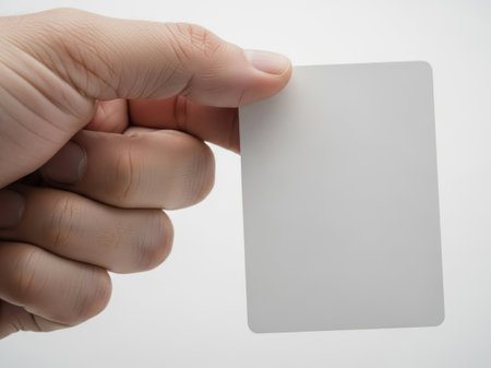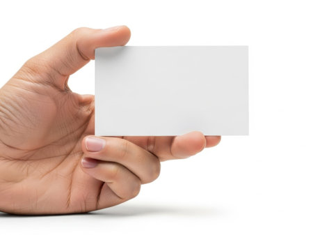 Hand holding a blank white card