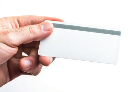 Hand holding card isolated on white background professionally