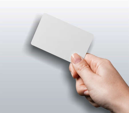 The image features a hand holding a white card against a white background. The hand is positioned in such a way that the fingers are visible around the edges of the card. The overall composition is simple and clean, with the white card being the central focus.