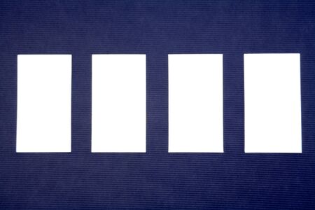 stack of rectangular white blank business cards on a blue background, backdrop for the designer