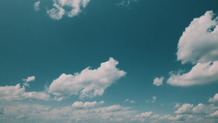 Time lapse. A Beautiful Blue Sky with Soft, Fluffy White Clouds Gracefully Floating in the Air