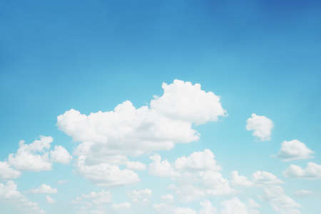 Blue sky and white clouds abstract background. Copy space nature and environment concept. Vintage tone filter effect color style.