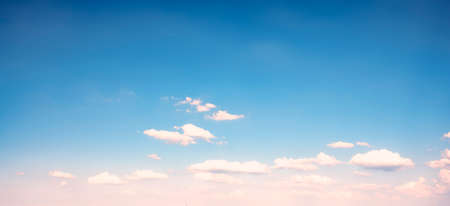 Fantastic soft white clouds against blue sky and copy space horizontal shape. Web banner. Website header.