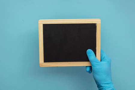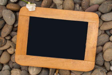 small vintage chalk blackboard on rustic wooden table, concept of leaving a message