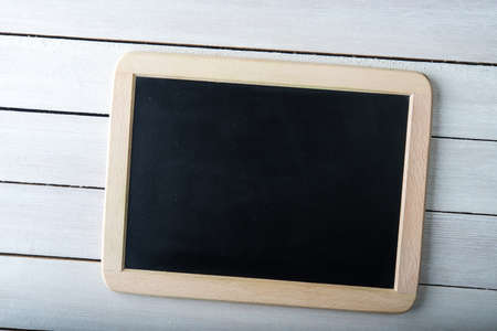 Small empty chalkboard on a light grey textured background. Blank. Blackboard Background. Blackboard texture