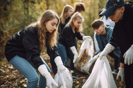 shot of a group of young people cleaning up trash at a cleanup event, created with generative ai