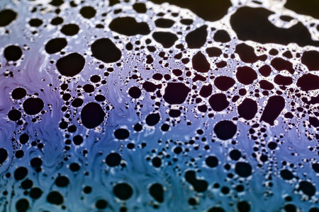 Dynamic bubbles create immersive textures with striking shadows against black background