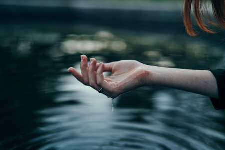 Water concept in everyday life. Hands supporting the water flowing from the faucet. water splashing from the tap