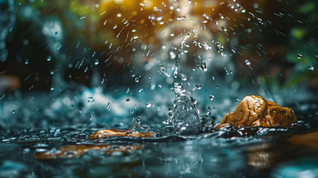 Close-up of water splashing around rocks, capturing the dynamic motion and refreshing essence of nature.