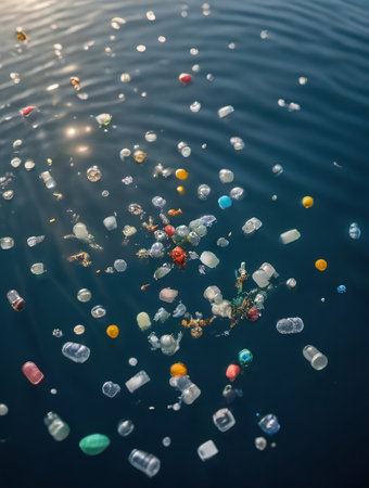 Microplastics Floating In Ocean Water, Micro Plastic Pollution. Generative AI