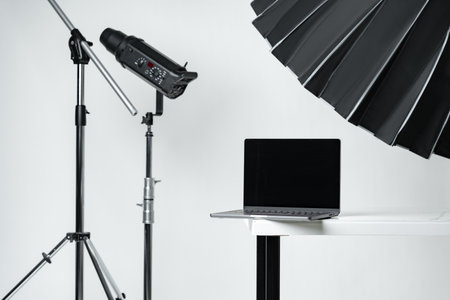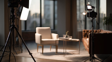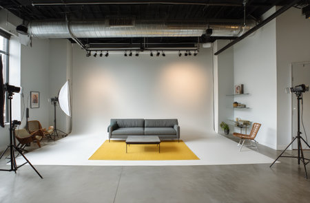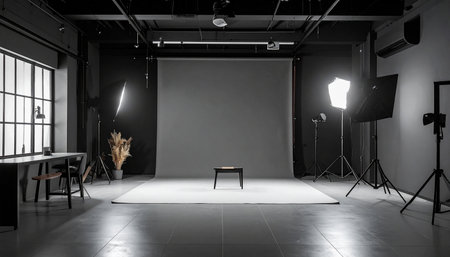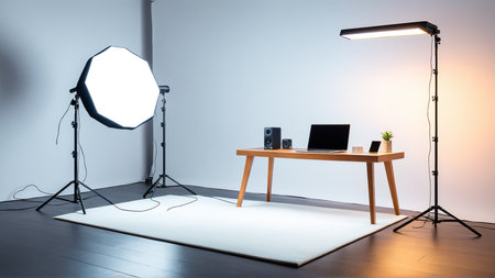 A close - up view of a modern photo studio, showcasing the professional equipment and setup. Generative AI