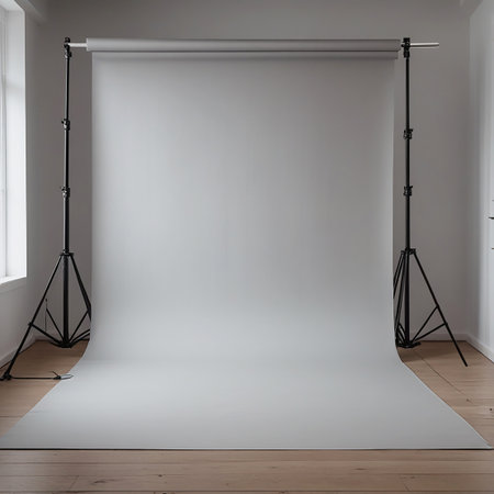 Professional photography studio setup with soft lighting and modern equipment, ready for a photo shoot.